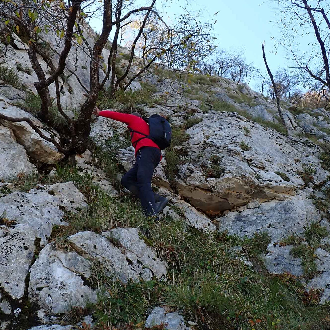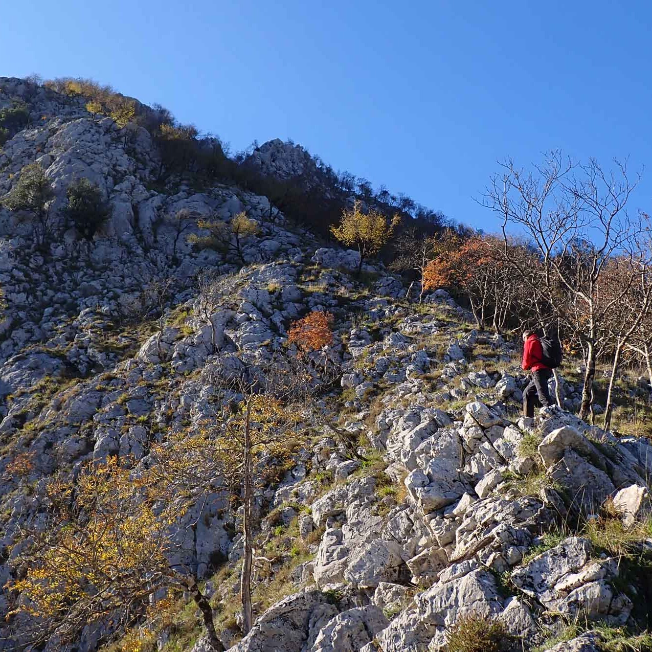 A pg. 290 del libro Le dolomiti della Val di Lima e l’Orrido di Botri, al largo versante orientale del M. Memoriante si dedica una descrizione generica senza illustrare (salvo qualche accenno) nessun itinerario. Sul lato destro di tale versante spicca una vasta parete rocciosa triangolare al cui vertice si trova il Balzo Rotondo, anticima Nord del Memoriante; il lato destro del triangolo, meno ripido di quello sinistro, su cui fu aperta una vecchia via alpinistica, coincide con la cresta Nordest del Balzo Rotondo, che la CTR definisce Greppo a Pecora almeno nel suo tratto inferiore e nel suo prolungamento boscoso fino al sent. CAI 386 (un tempo 82b). Tale cresta, bella e sconosciuta, non banale ma alla portata dell’escursionista esperto, viene descritta nel presente articolo.