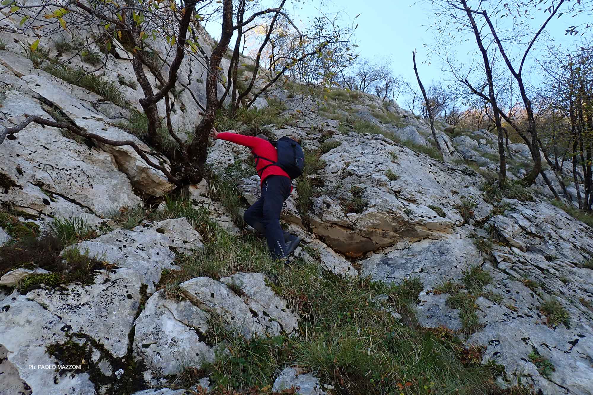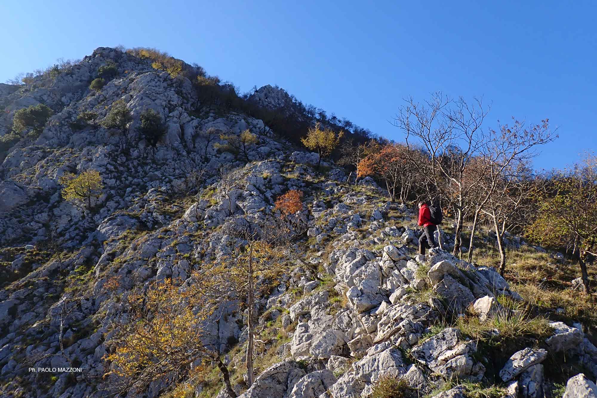 A pg. 290 del libro Le dolomiti della Val di Lima e l’Orrido di Botri, al largo versante orientale del M. Memoriante si dedica una descrizione generica senza illustrare (salvo qualche accenno) nessun itinerario. Sul lato destro di tale versante spicca una vasta parete rocciosa triangolare al cui vertice si trova il Balzo Rotondo, anticima Nord del Memoriante; il lato destro del triangolo, meno ripido di quello sinistro, su cui fu aperta una vecchia via alpinistica, coincide con la cresta Nordest del Balzo Rotondo, che la CTR definisce Greppo a Pecora almeno nel suo tratto inferiore e nel suo prolungamento boscoso fino al sent. CAI 386 (un tempo 82b). Tale cresta, bella e sconosciuta, non banale ma alla portata dell’escursionista esperto, viene descritta nel presente articolo.