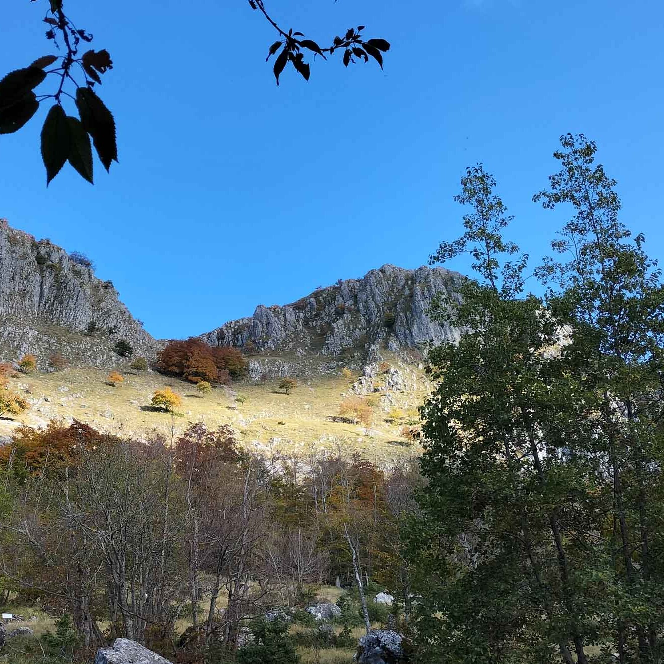 Al termine delle rocce si prosegue su larghi prati in loc. La Bandita fino al punto più alto (1425.6 m, h 1.30/3.00); mantenendo la direzione di provenienza si scende di qualche metro, dopo pochi passi nel bosco, a un altro vasto pianoro con qualche pozza e un monumento, oltre il quale s’incrocia il sent. 58 (1400 m c.).