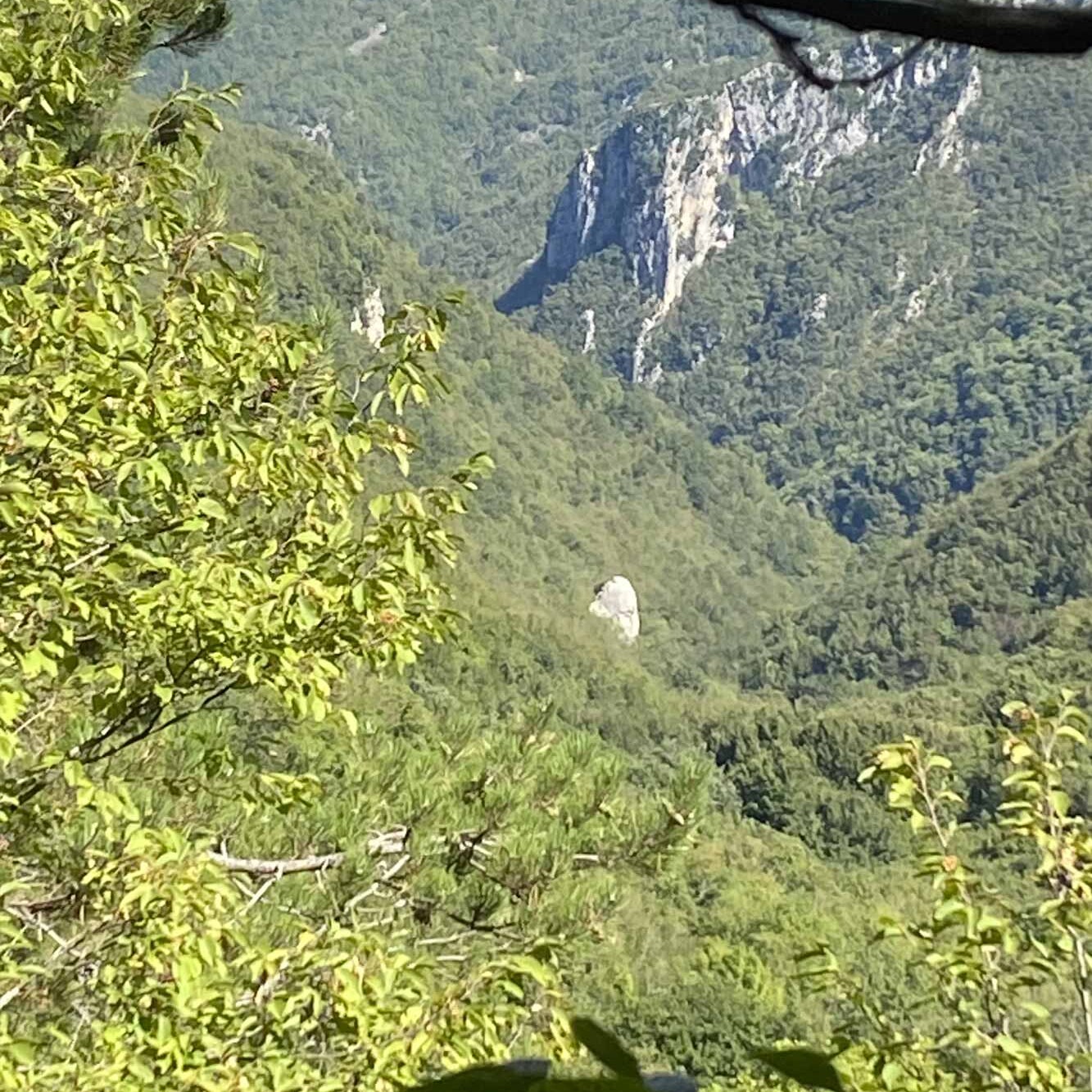 Lungo la strada che da Carrara sale a Campo Cècina, in loc. Gabellaccia si trova una ben conosciuta palestra di arrampicata, vasta e articolata, rivolta al versante marino. Il lato opposto lunigianese è boscoso, ma poco sotto il crinale spartiacque, alla testata della Val di Prata (più giù Val Saliceto) emergono due modeste ma interessanti strutture rocciose: una si chiama Puntone ma i carrarini la chiamano anche Dente del Gigante; secondo Renzo Gemignani, noto alpinista di Carrara (vedi in Rete il suo racconto a La Voce Apuana del 28 dicembre 2022), tale nome gli fu dato dagli abitanti dei paesi vicini, ma ci sarà anche un’allusione scherzosa al celebre monte nel gruppo del Monte Bianco; l’altra struttura prende il nome di Pilastro di Val di Prata; ambedue sono percorse da brevi vie di arrampicata. L’escursionista può salire la seconda ma solo giungere ai piedi della prima. Per visitarle ambedue basterebbe un anello di circa tre ore dalla Gabellaccia; ma conviene effettuare un giro più ampio partendo dalla Maestà di Villa nei pressi di Tenerano, e percorrere, per l’avvicinamento e per il ritorno a valle, alcuni dei bei sentieri CAI delle Apuane di Lunigiana, perlopiù boscosi ma qua e là movimentati da rocce, e in genere assai solitari.