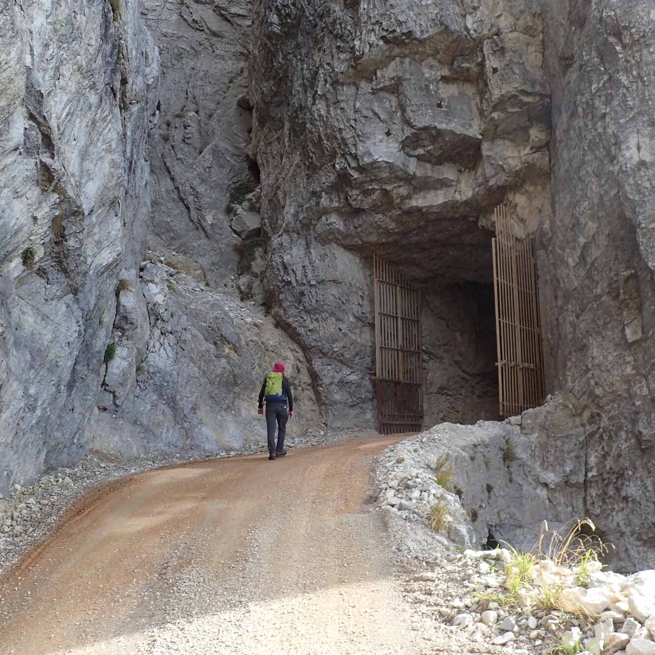 Percorsa anche la terza galleria, che attraversa la q. 1419.2 m e che è munita all’ingresso di un cancello metallico sempre aperto, e dopo essersi voltati all’uscita a osservare tale quota dalla nuova prospettiva, si continua sulla marmifera, in ambiente aperto, fino a incrociare a 1389.1 m una dorsale oltre la quale si apre il bacino marmifero della cava dei Tavolini; tale dorsale scende in direzione SSE dalla cresta che dai Torrioni del Corchia sale all’anticima; su di essa spicca appunto la q. 1487.9 m, che è anche un piccolo nodo orografico da cui scende verso SO quella che è la sponda sinistra idrografica del canale SO con le quote 1443.1 m e 1419.2 m.